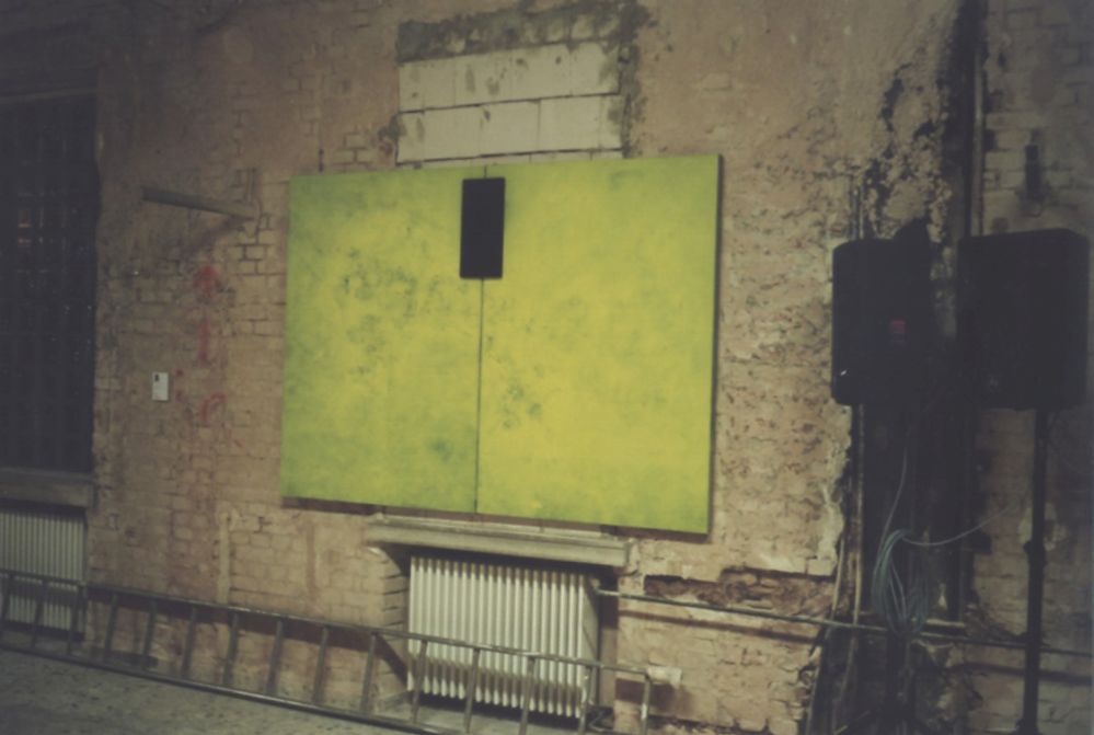 "Die Dämmerung des Dämonischen", Installation, Laser-/Holzdruck "Projekt gelb, Yellow Power"