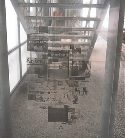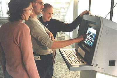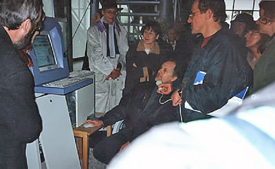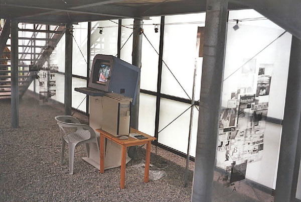 "Rom ist überall" Installation (CD-ROM, PC, Touchscreen-Monitor, Screenshots auf Folie u.a.) in den Thermen