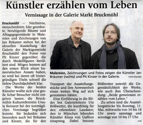 Jan Bräumer, Pit Kinzer »Modellwelten« Galerie Markt Bruckmühl, 06.04.-11.05. Presse 1 OVB Bad Aibling, 9.4.2008 Print und online Künstler erzählen vom Leben