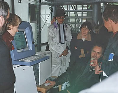 "Rom ist überall" Installation (CD-ROM, PC, Touchscreen-Monitor, Screenshots auf Folie u.a.) in den Thermen